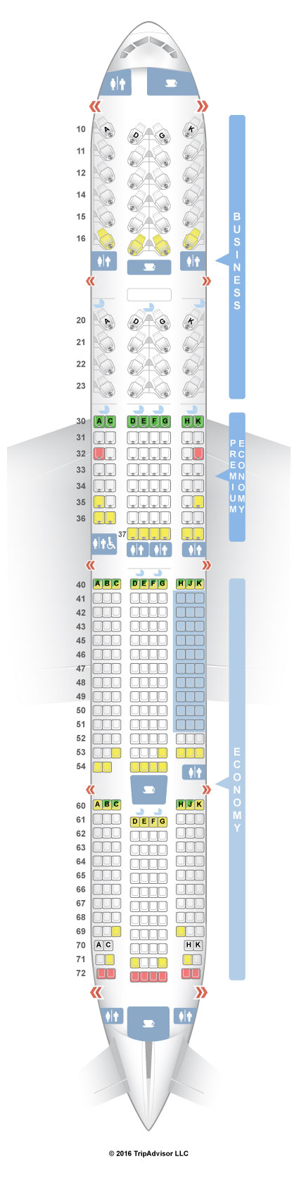 China Airlines flies their Boeing 777-300ER in a three class configuration with 40 flat bed Business Class seats, 62 Premium Economy seats, and 256 standard Economy seats.