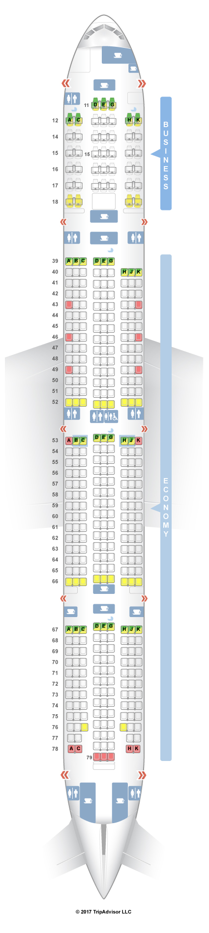 There is another version of this aircraft that offers 3 extra seats in the Business Class and 3 seats less in the Economy Class.