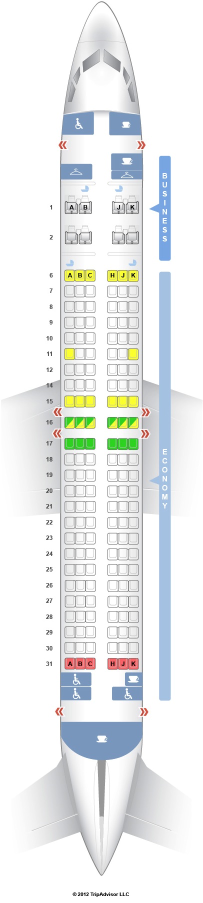 This two-class version of the Boeing narrow-aisle jet is used on short-haul routes that attract business travelers.