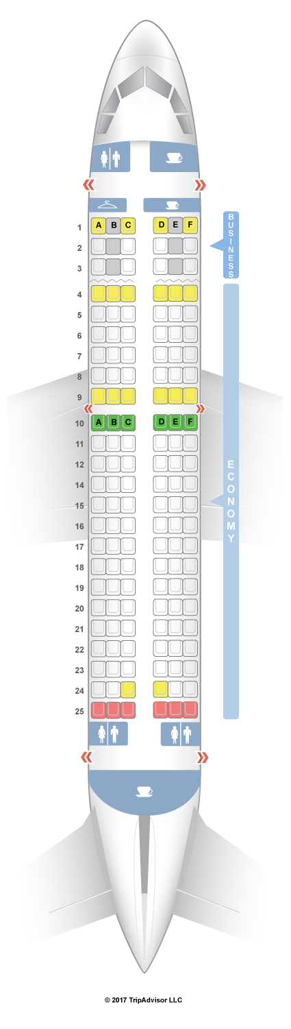 Croatia Airlines' Airbus A319 are used on short to medium-haul flights. The aircraft are configured with 144 standard seats arranged in Business Class and Economy Class seating. Business Class is dedicated to the first three rows of the aircraft, however, it may be contracted or expanded depending on demand. Business Class seating is the typical European-style configuration - three seat group on each side of the aisle with the middle seat blocked.