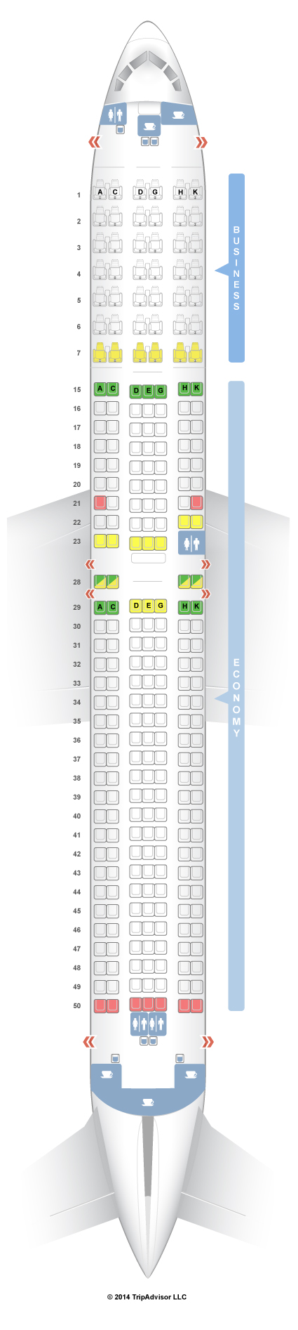 This version of the Boeing 767-300ER (76W) seats 261 passengers with 42 of these seats being in Business Class. This aircraft is primarily used on Domestic routes. The 767-300ER is capable of being flown by a two-person cockpit crew through the use of system automation features and digital technology.