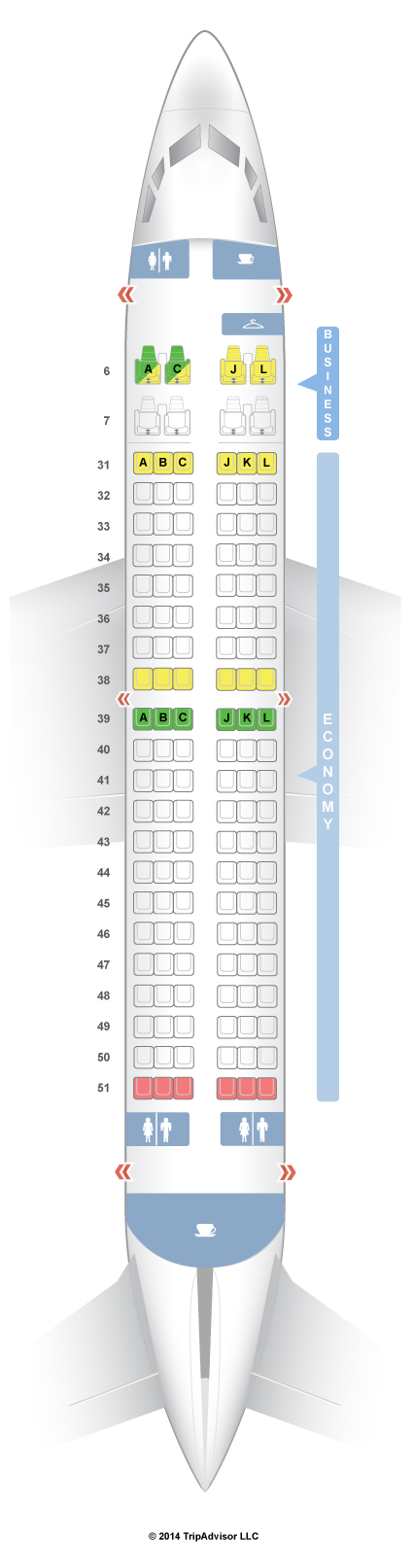 This aircraft features a two class cabin configuration with 8 Business class seats and 126 Economy seats.