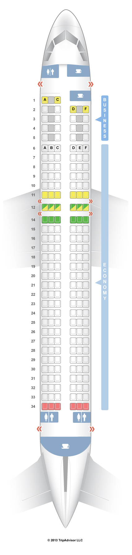 This is an Airbus A320 aircraft that is operated by Iberia Express on short and medium haul routes, a subsidiary of Iberia. The Business and Economy class sections can be adjusted according to demand. The configuration shown is the most common with 18 Business class seats. In Business class, the middle seat is always left unoccupied to allow for more room for the Business Class passengers.