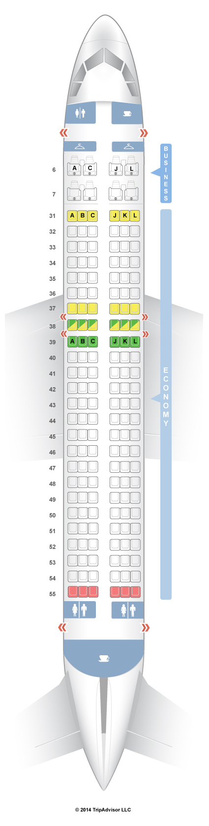 This aircraft features a two class cabin configuration with 8 Business class seats and 150 Economy seats.
